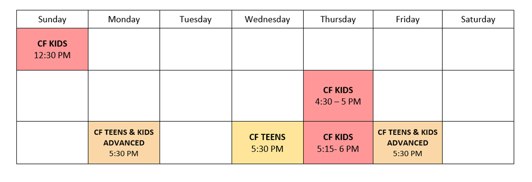CFBH KIDS SCHEDULE