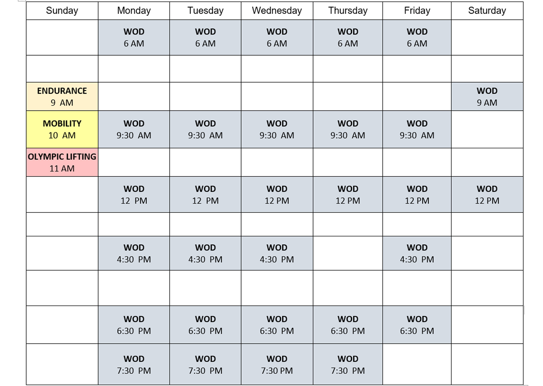 Open Gym Hours